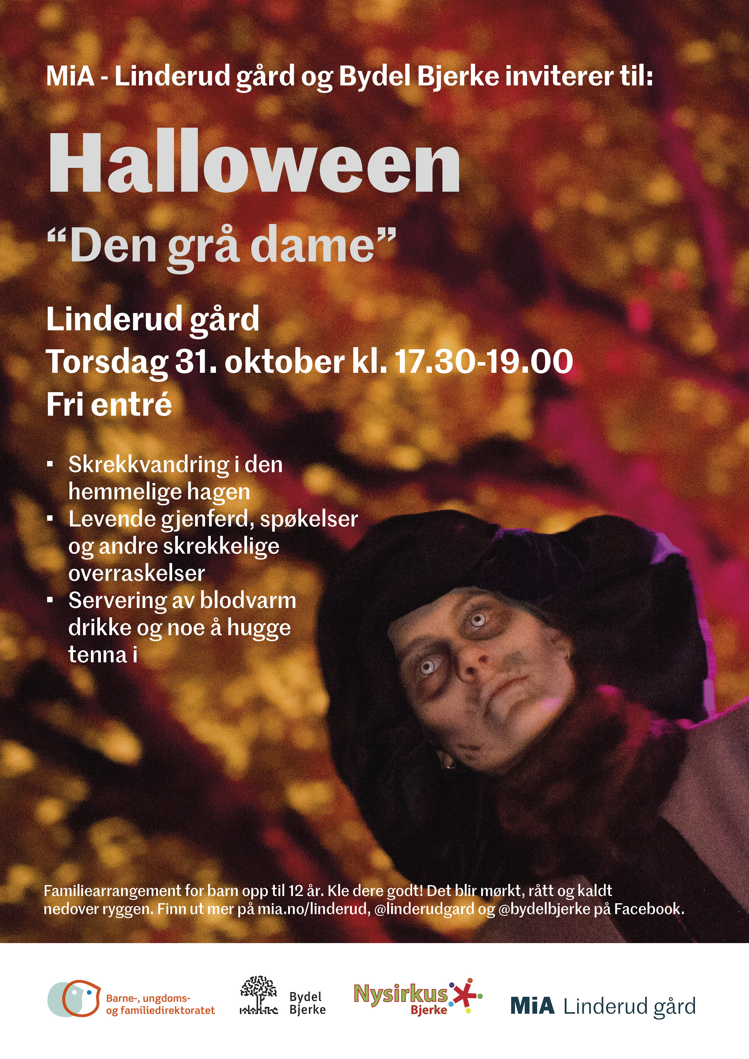 Linderud Gård og Bydel Bjerke inviterer til Halloween på Linderud Gård torsdag 31. oktober kl 1730-1900.